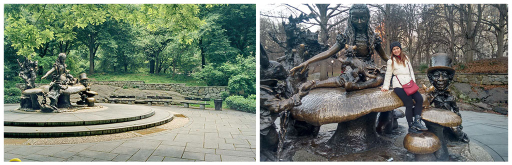 A Estátua da Alice no País das Maravilhas em bronze atrai muitos turistas por sua beleza e as crianças também adoram ficar subindo nela, “brincando” com os personagens e tirando fotos, sem duvida vale uma passadinha para aquela foto de turista!!!
