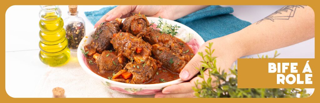 O Bife à Rolê é hoje considerado uma receita com gostinho de casa! Mas aos poucos ele tem desaparecido dos lares brasileiros e muito disso é por a maioria das vezes ele ser cozido em panela de pressão e em sua maioria os cozinheiros menos experientes ainda tem muito medo da panela de pressão por isso resolvi compartilhar essa receita com vocês para aprender que dá sim para fazer um Bife à Rolê rápido e fácil e o melhor com um molho de tomate cheio de sabor!