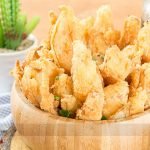 Vocês que me acompanham a algum tempo sabem que aqui em casa quase nunca entra cebola né? Bom isso tem um motivo simples, o namorado é uma dessas pessoas que não gosta de cebola, come apenas se for ralada e triturada, então como estamos juntos a 13 anos eu aprendi a cozinhar sem esse ingrediente, porém adoro cebola seja ela empanada, caramelizada ou em um vinagrete delicia! Então dessa vez resolvi ensinar para vocês a minha versão da famosa Bloomin onion do OutBack ou seja Cebola Empanada! Mas já deixo aqui minha opinião sincera sobre essa receita: Faça ela em pétalas, vai ser bem mais fácil empanar, fritar e fica com a casquinha muito mais firme e crocante.